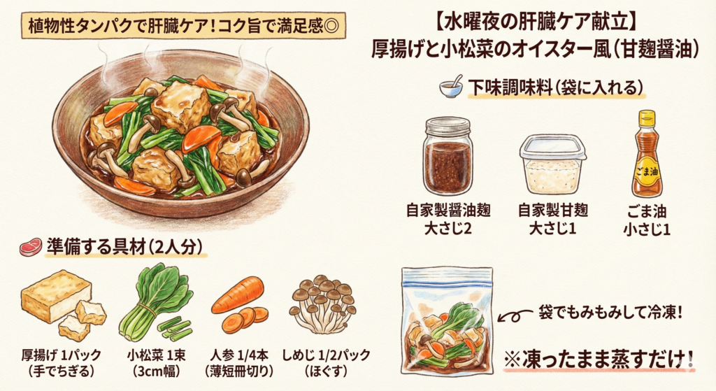 厚揚げと小松菜のオイスター風(甘糀醤油)